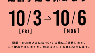 ブログ 【お知らせ】10/3(金)〜10/6(月)アーカイブ講座の配信手配を休みます 10/3(金)〜10/6(月)のお申し込みには、10/7(火)以降にお返事させていただきます。お待たせして申し訳ありませんが、何卒よろしくお願いします 2025.09.29 ブログ